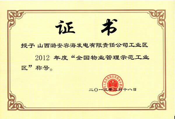 容海發(fā)電項目獲“全國物業(yè)管理示范工業(yè)區”稱(chēng)號